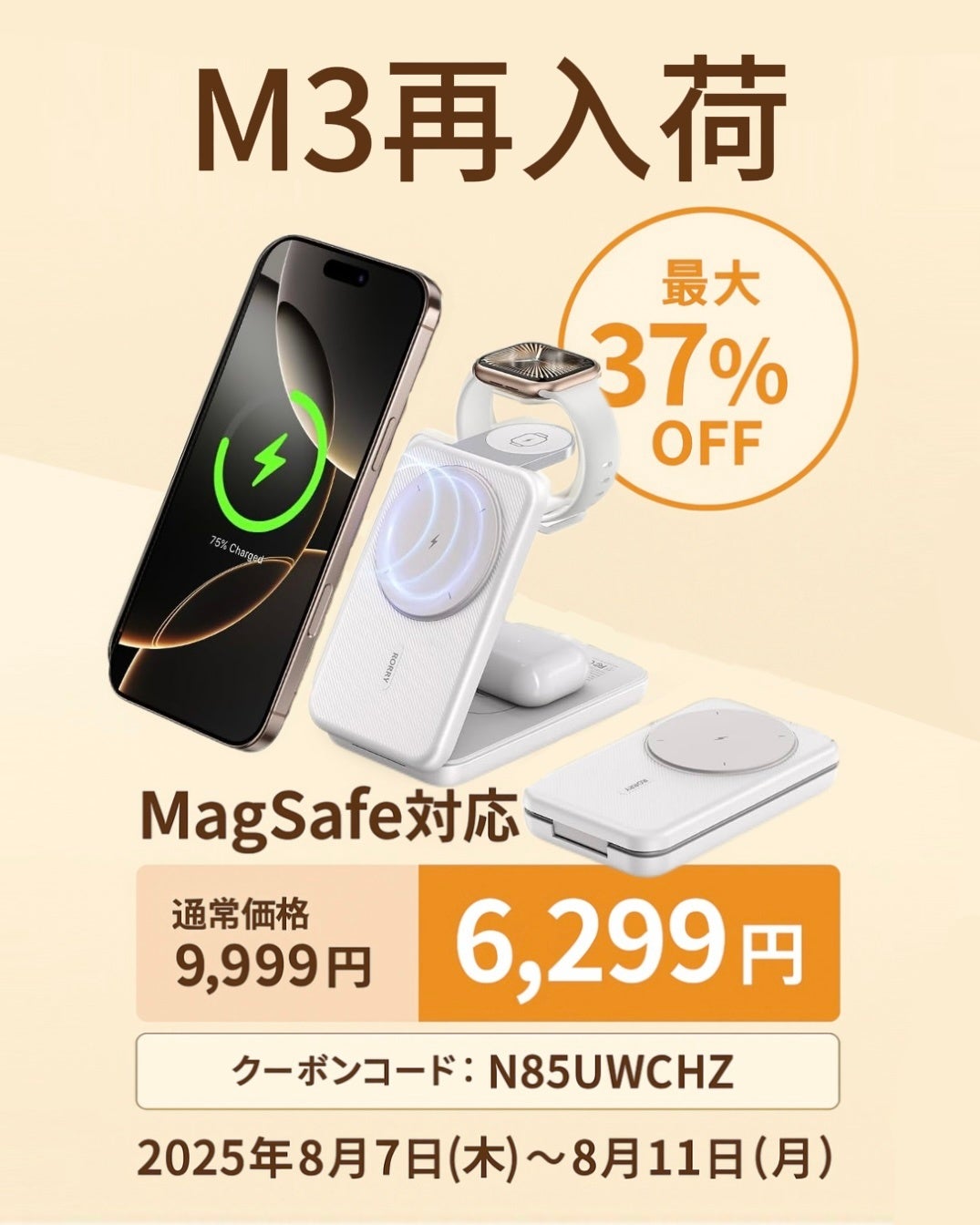 「RORRY」は、2025年8月7日(木)より、「M3 折りたたみ式モバイルバッテリー」の再入荷と同時に、特別キャンペーンを開始いたしました。今回入荷分より品質と性能をさらにアップグレードし、より快適な充電体験を提供いたします。