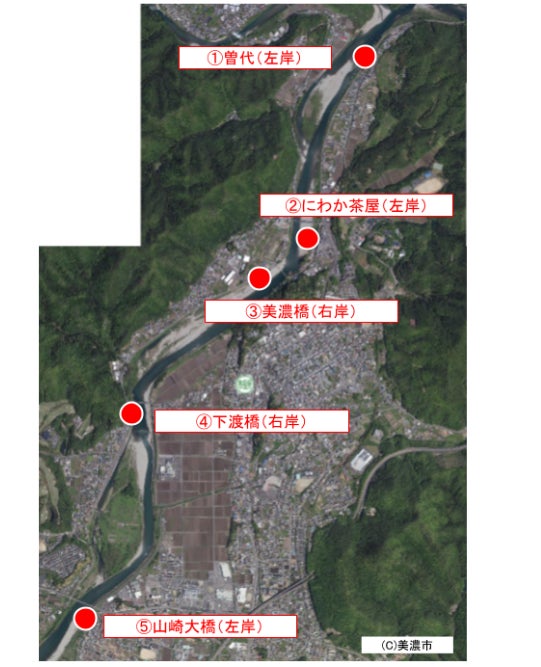調査地点:①曽代 左岸(美濃市曽代)②にわか茶屋 左岸(美濃市曽代・道の駅 美濃にわか茶屋 西側