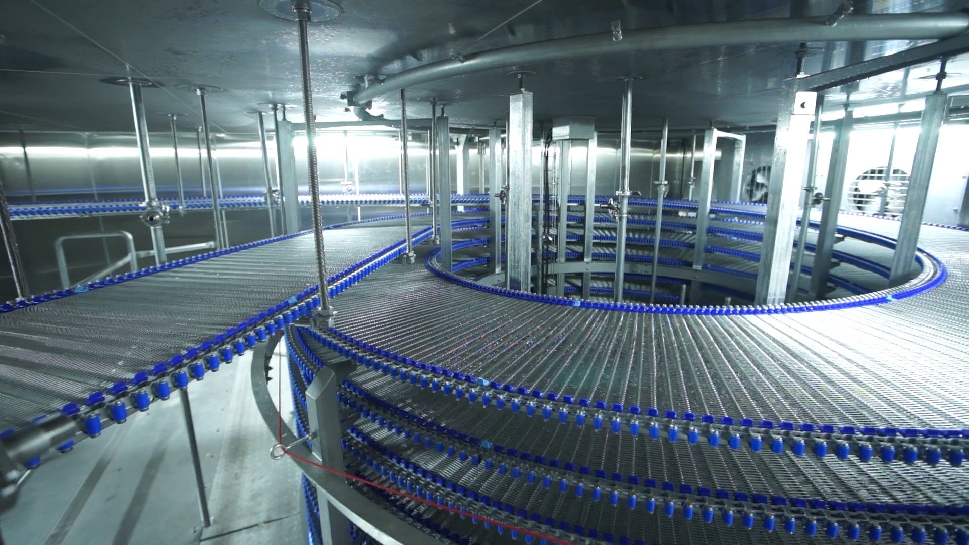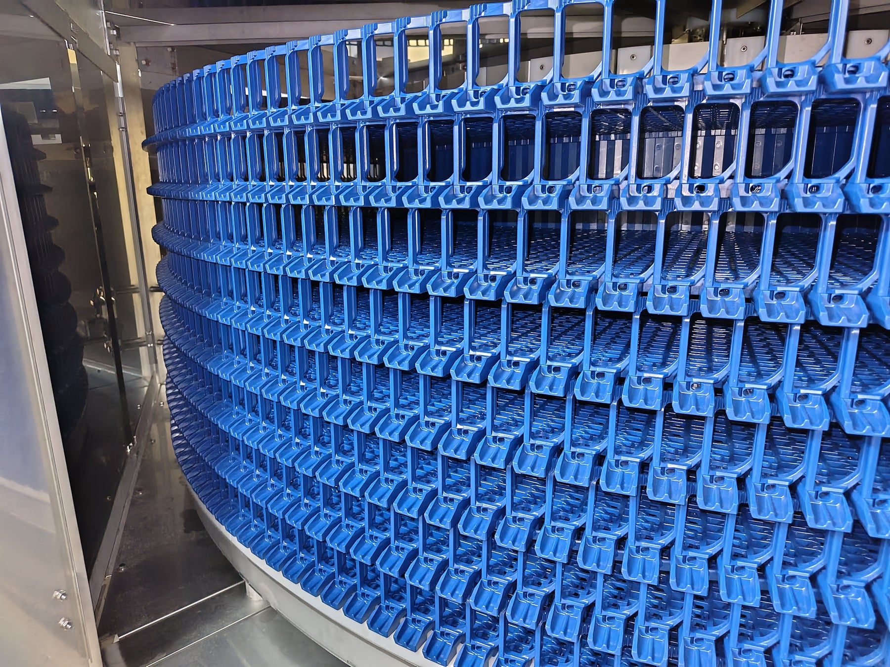 プラスチックベルトスパイラルフリーザーは、高速運転による高い処理能力を実現したスパイラルフリーザーです。加えて、積載する食材の整列ズレの抑制と搬出口での良好な剥離性により、食品ロス低減と品質向上に寄与します。
