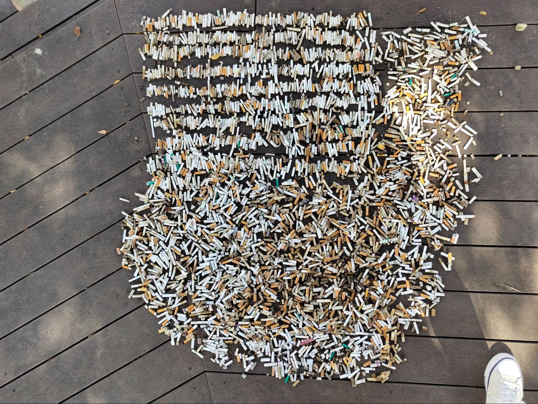 多くのたばこのフィルターに使われているのはアセテート繊維という合成繊維で、合成樹脂プラスチックの一種です。そのためフィルターは生分解性が非常に低く、ポイ捨てされたたばこの吸い殻は排水溝や川を辿り、いずれマイクロプラスチックとして海の生態系を脅かす原因となるのです。実際にポイ捨てされたたばこの吸い殻は、雨水などにさらされてフィルター部分だけが残っているようなものも多く散見されます。