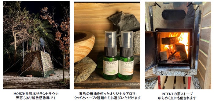 五島市内の宿泊施設でテントサウナの設置は初となります。サウナ用のテント本体は、世界一熱いと評判のMORZH(モルジュ)製とサウナ愛好家も認める本格仕様です。
