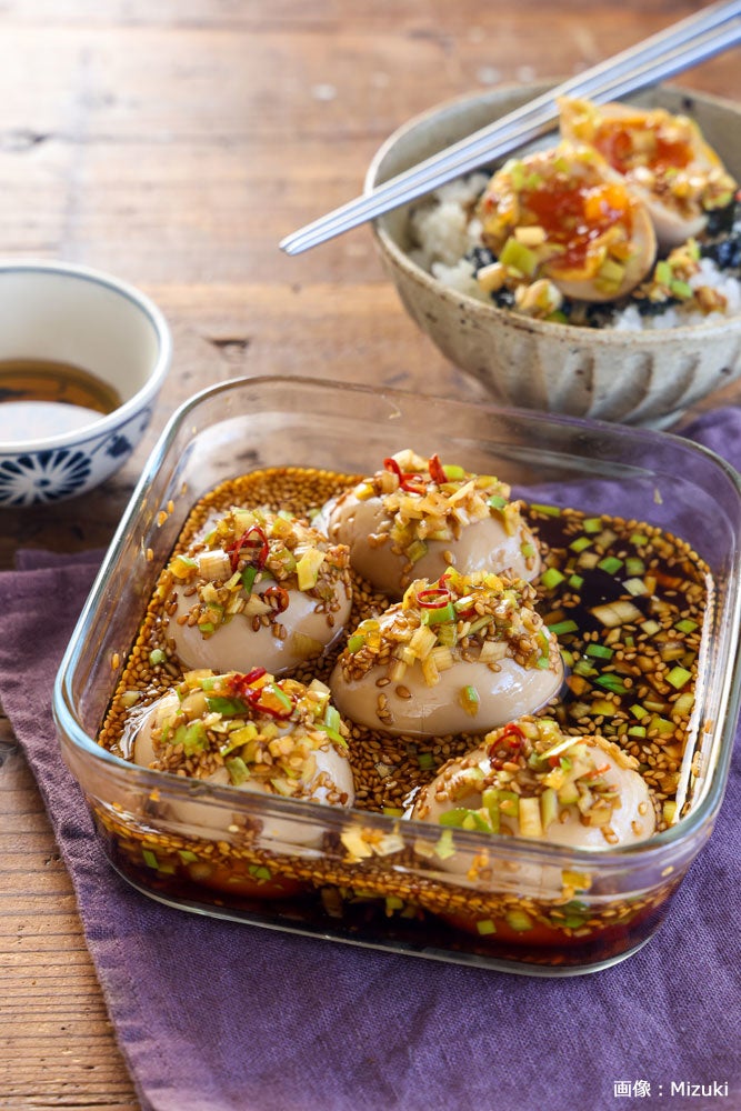 保存容器に刻んだ長ねぎやにんにく、唐辛子などの調味料を入れ半熟卵を漬けた韓国発の味付け卵。おいしくて中毒性があるという意味から「麻薬」というネーミングに。過激なワードに配慮して「合法卵」「◎◎風味付け卵」などといったネーミングでも投稿されている。