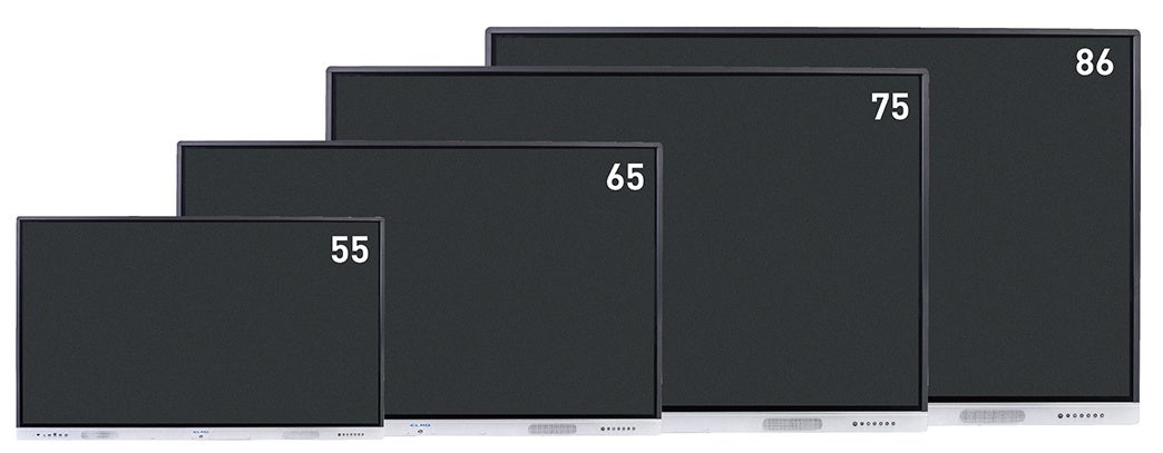 豊富なサイズを取り揃えているため、人数やスペースに応じて55インチ・65インチ・75インチ・86インチの4サイズの中から大きさを選択できます。また、設置方法も標準的なキャリアブルスタンドや昇降スタンド等、設置場所に合わせた方法をご提案できます。