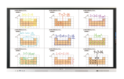 画面に書いた内容は保存できるため、授業や会議の振り返りや朝礼でも、繰り返し何度でもご活用いただけます。