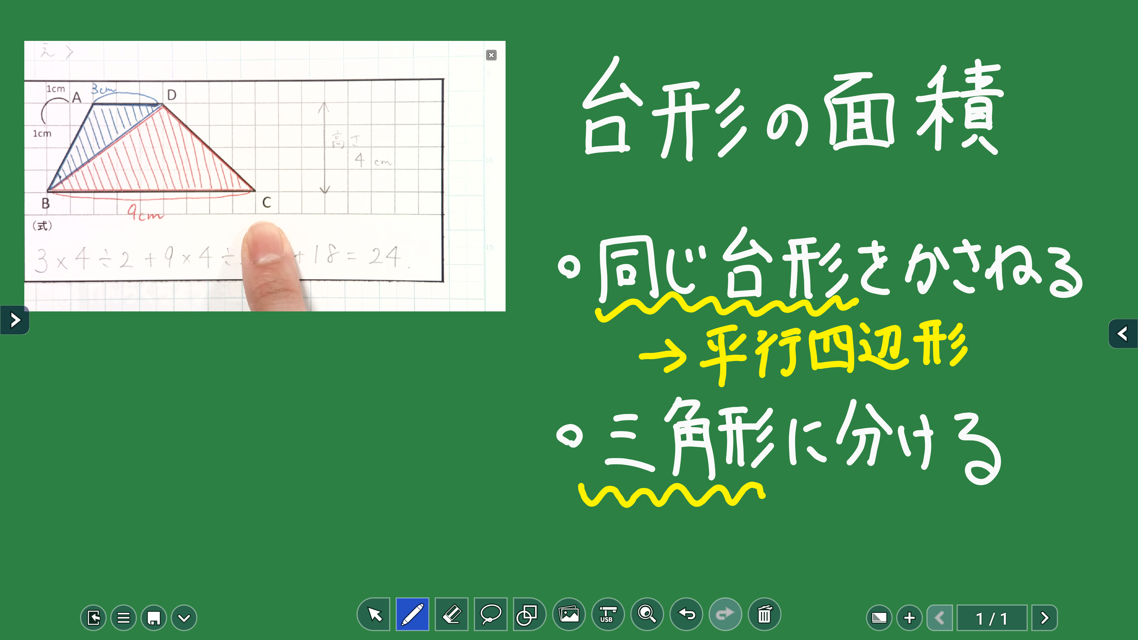 また、書き込み機能については、表示している資料の上から付属のペンや指で自在に書くことができ、消すときは手のひらで消す、という直観的操作が可能です。