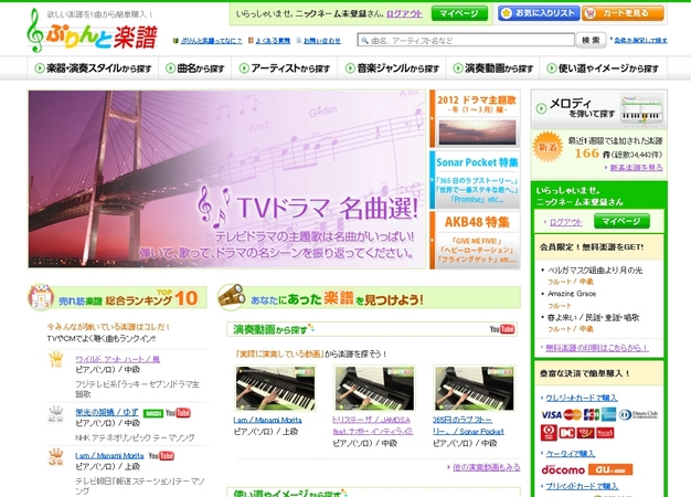 無料楽譜(2012年8月24日~8月30日)情報~欲しい楽譜を1曲から簡単購入!