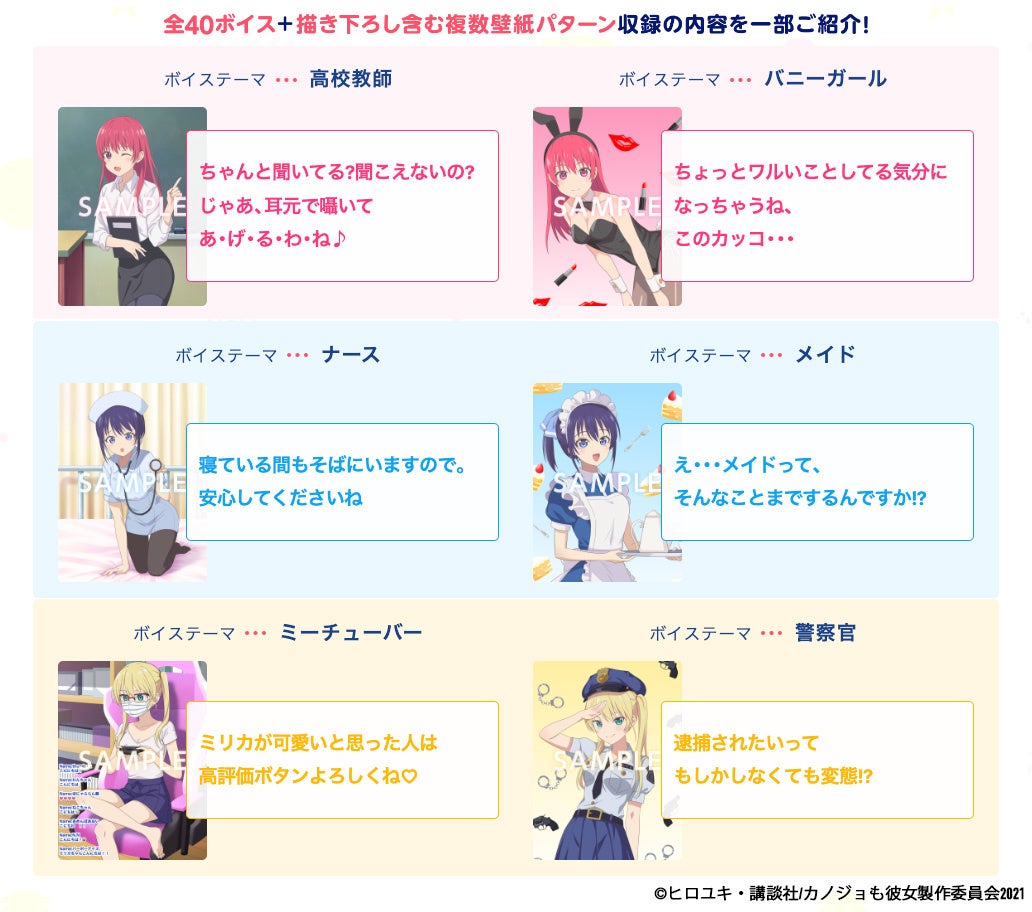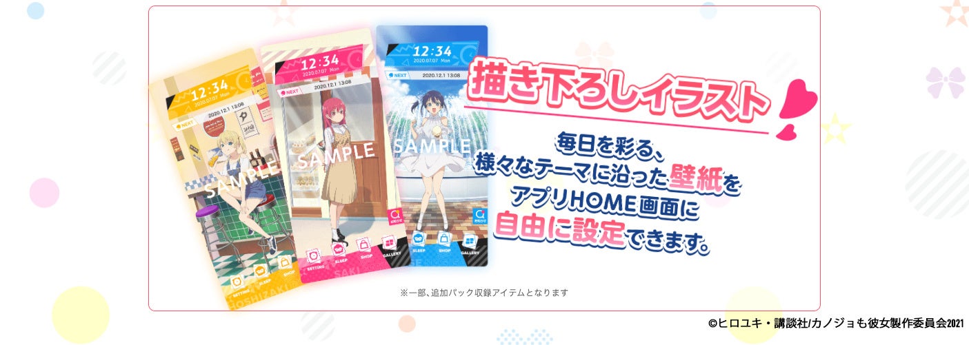 本アプリは、アニメ「カノジョも彼女」のメインキャラクターである咲、渚、理香ver.をそれぞれ配信!