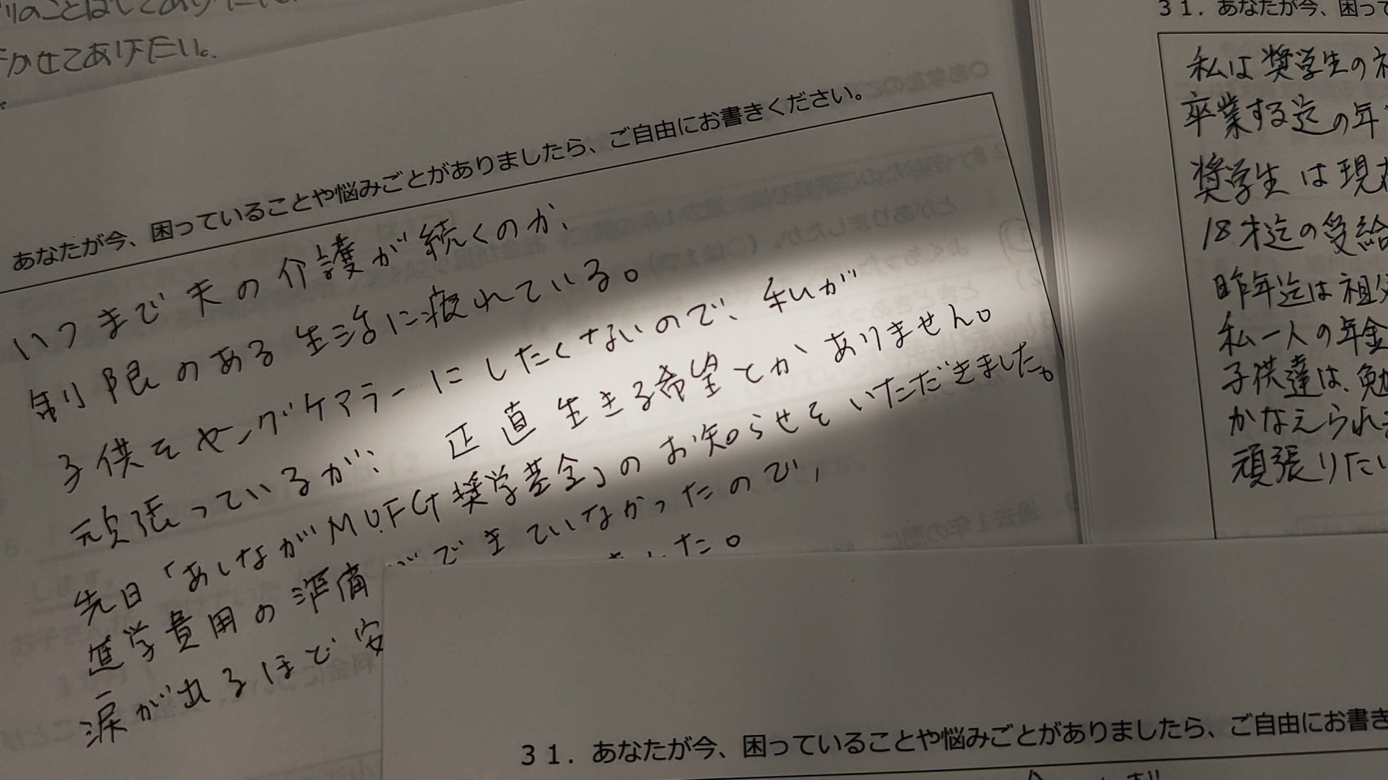 一つは“高校生を対象にしていること”です。高校生への支援は小中学生に比べ手薄で、授業料免除などはあっても、生活そのものを支える制度はほとんどありません。今回の調査では、高校生自身がアルバイトをしてもなお生活に苦しんでいる姿、部活や友人関係など、普通なら経験できるはずのことを諦めている姿が浮き彫りになりました。