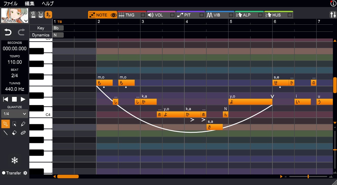 エディタの豊富な編集機能を用いて、ピッチ、タイミング、ビブラート、声質を細かく調整することで、自分だけの「知声」を作り出すこともできます。