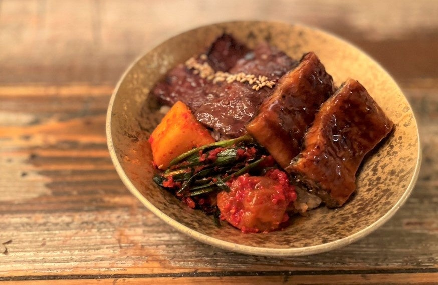 焼肉だけでは不足してしまう栄養素は、日本で古くから夏負けの特効薬として食べる習慣のある「うなぎ」や焼肉のお供として定番のキムチ、ご飯に発芽玄米やきびなど十六穀を混ぜ込むことで補っております。贅沢な「うなぎと焼肉」の組み合わせは、スタミナ抜群・夏バテ防止にもぴったりな自信作です。