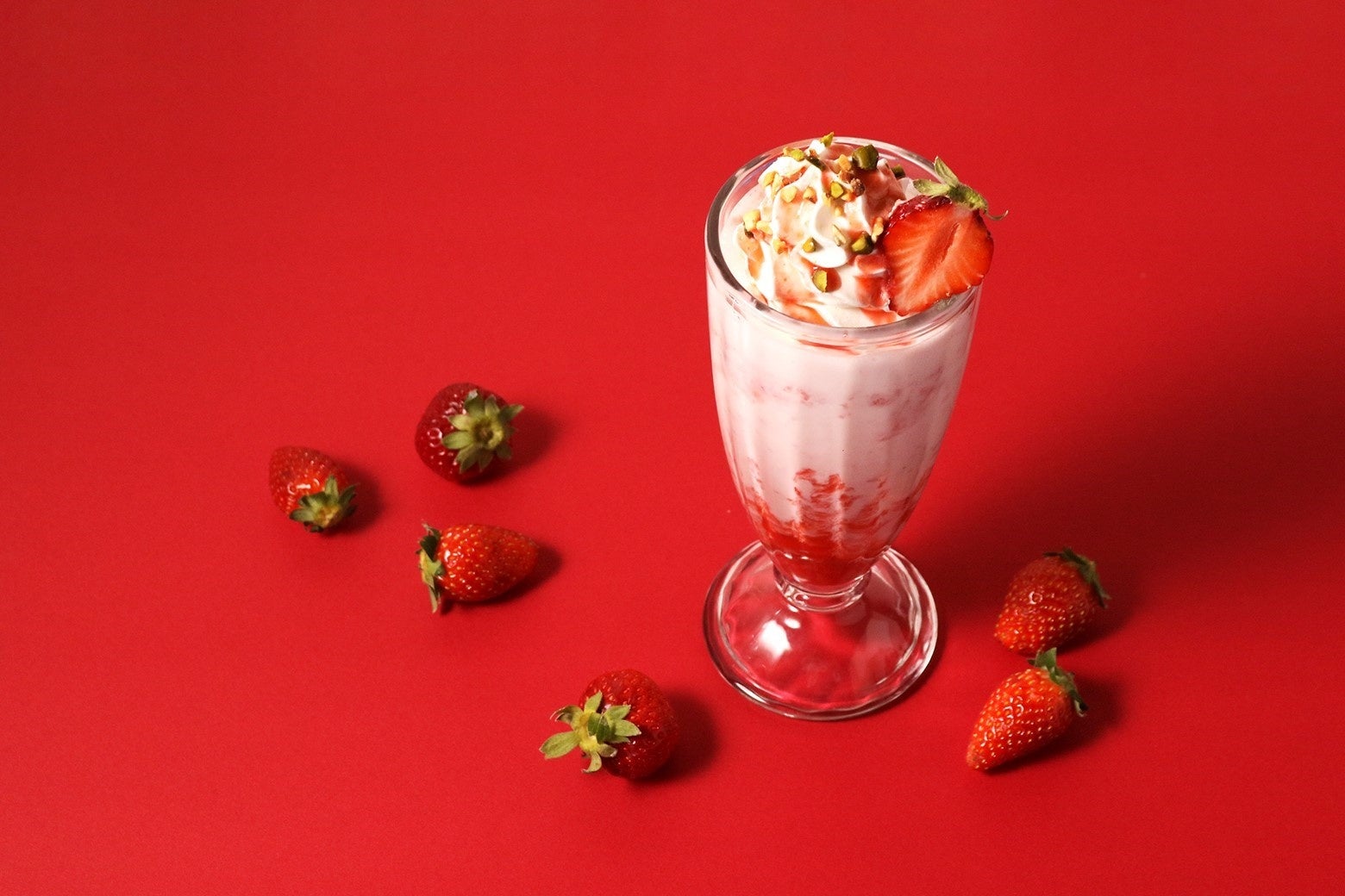 オーシャンビューが魅力のピーナッツダイナーからは、見た目も可愛いいちごフレーバーのミルクセーキが登場。ミルクセーキの優しい甘みといちごの酸味が絶妙です。