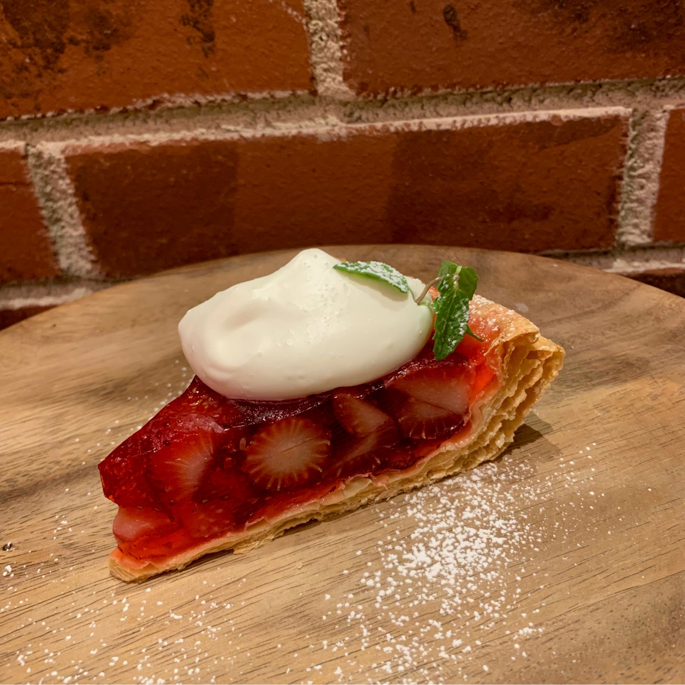 ゼリーで包まれたイチゴのパイ。ストロベリーをふんだんに使用した、いちご好きにはたまらない、スイーツパイです。生クリームをのせてアメリカンスタイルでお召し上がりください。