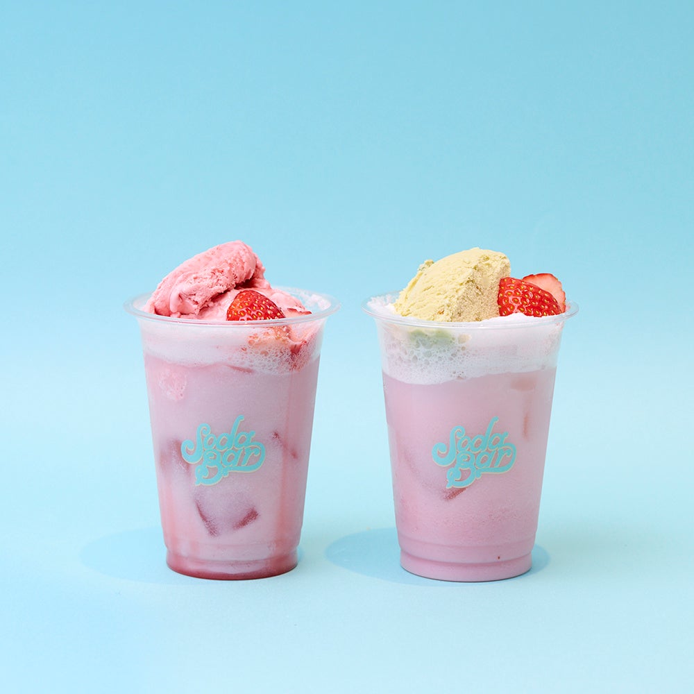 国産いちごをたっぷり使った大人気商品!いちごミルクの懐かしい味わいにソーダをプラスした新感覚ドリンクです。持っているだけで可愛い、子供から大人まで楽しめる1品です。