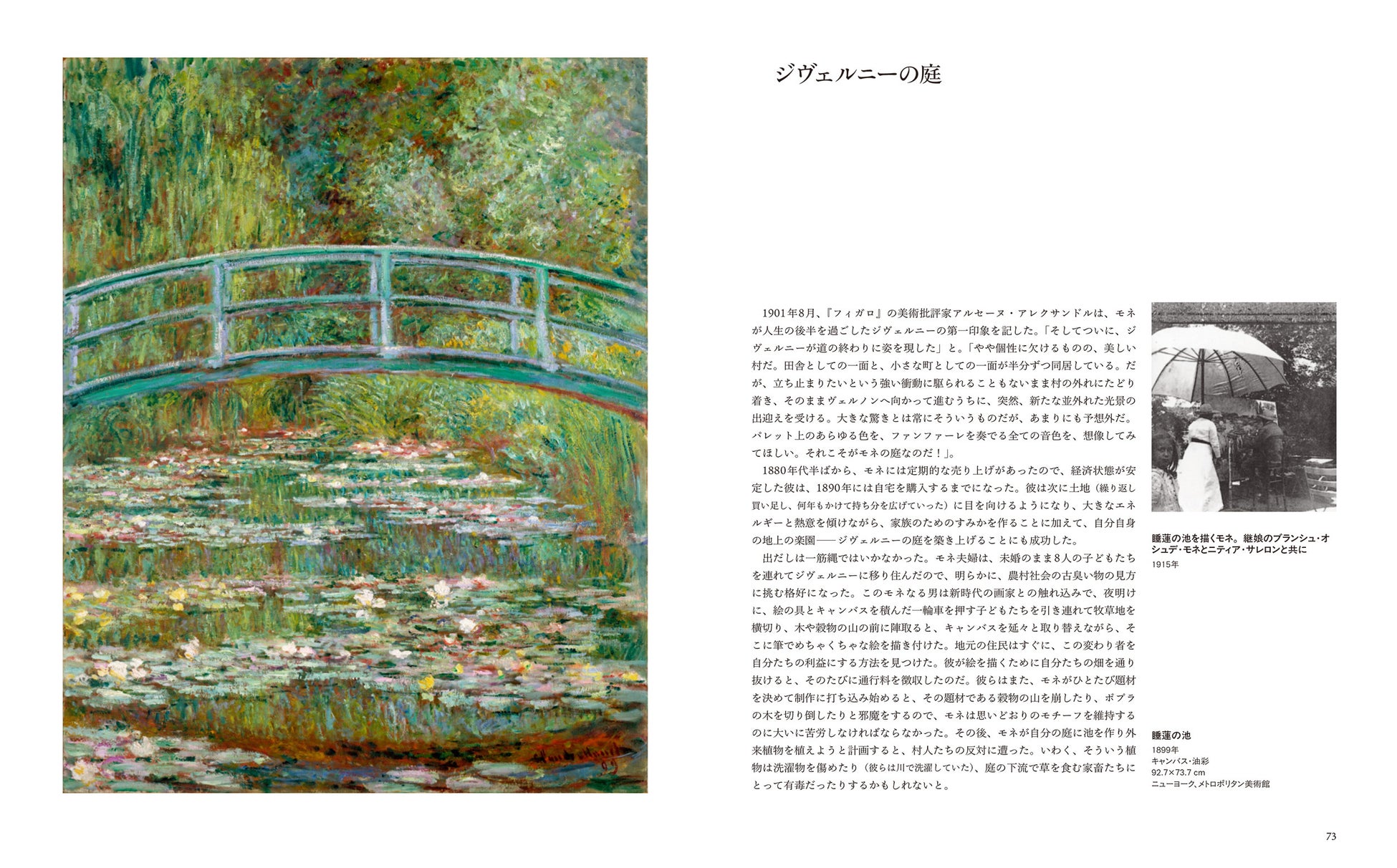 雲の流れ、水面の煌めき、風に揺れる花。それらの一瞬一瞬の輝きをキャンバスに永遠に留めようとした画家、クロード・モネ。本書では、《カミーユ(緑衣の女性)》《印象、日の出》《ルーアン大聖堂》《睡蓮の池》など、名作・大作101点を通じて、光を信じ、光を描き、光とともに歩んだモネの86年間の生涯をたどります。