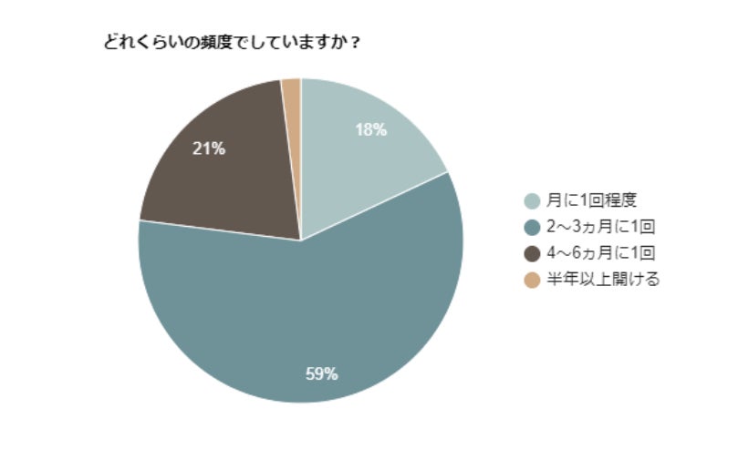 一番多かった答えは「2〜3ヵ月に1回」で59%です。約6割の方が2〜3ヵ月に1回と答えたのです。