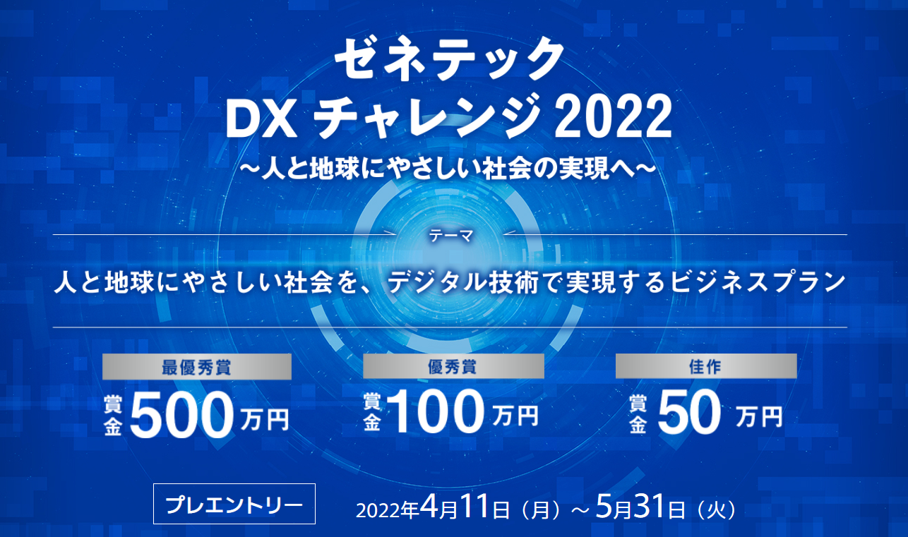 株式会社ゼネテック(本社:東京都新宿区、代表取締役社長:上野憲二、東証スタンダード:4492、以下 当社)は、ビジネスプランコンテスト「DXチャレンジ2022~人と地球にやさしい社会の実現へ~」を開催します。
