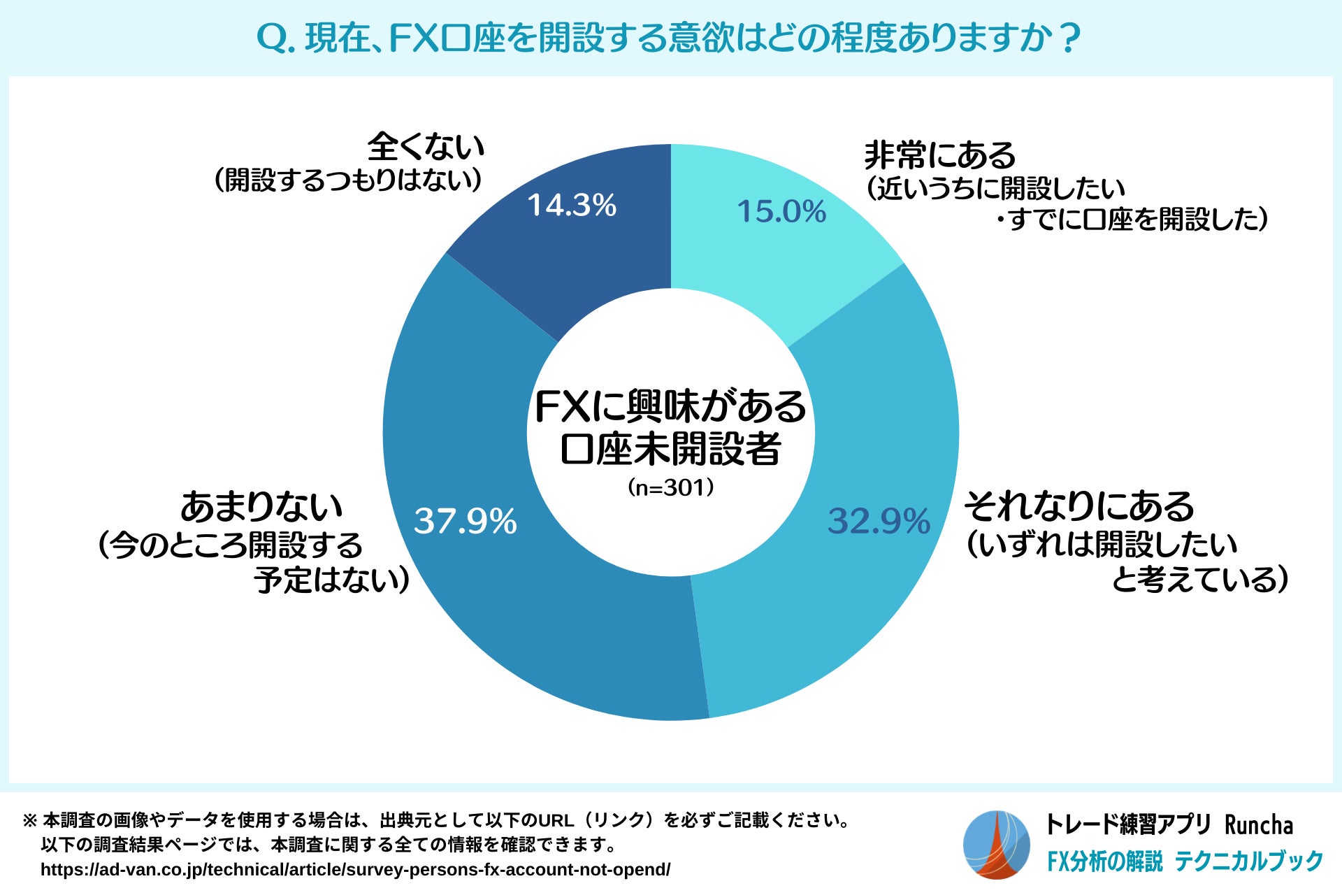 以下は、FXに興味がある口座未開設者に、今後FX口座を開設する意欲があるか質問した結果です。