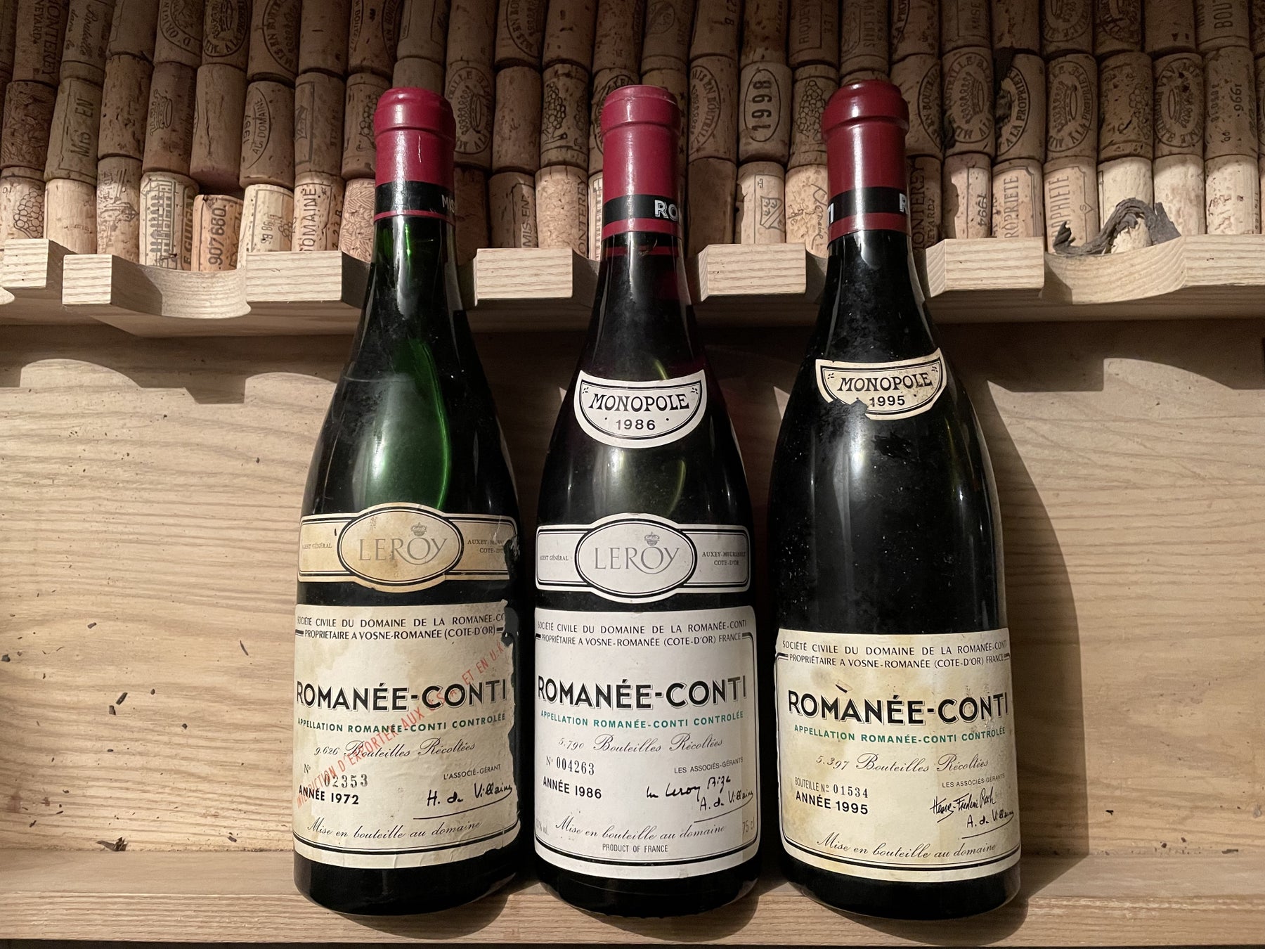 ロマネコンティ1972、1989、1996、3つのヴィンテージを飲み比べいただきます。