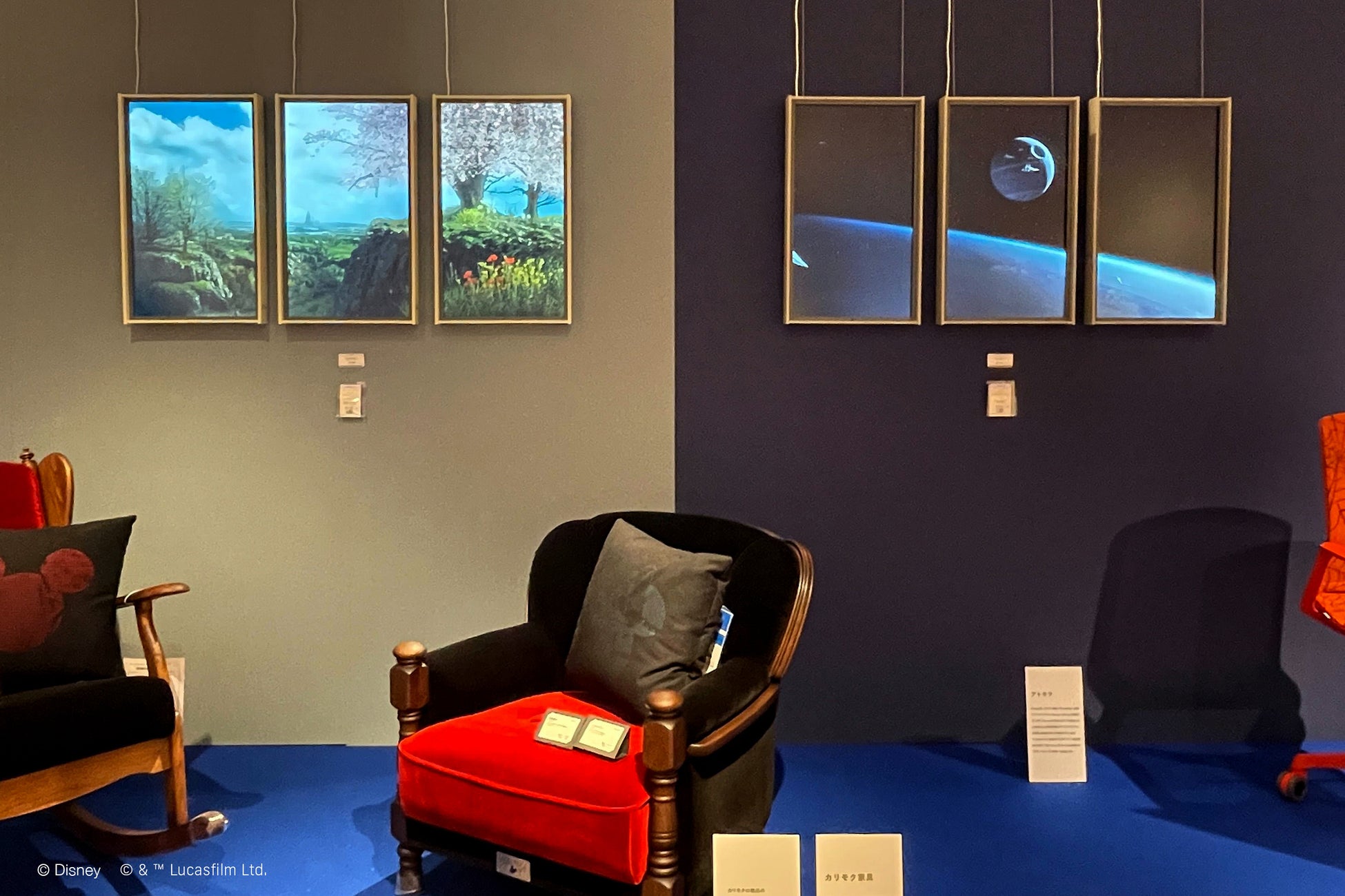 催事場では、ディズニー実写映画『マレフィセント』から夢のように美しいムーア国、そして惑星「ジェダ」と向き合う「デス・スター」をはじめとした9本の風景動画が、窓を3台つなげたパノラマで体験できます。
