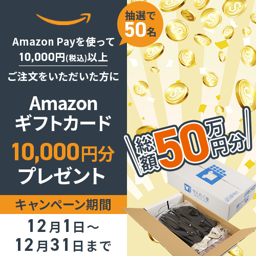 ・プレゼント内容:10,000円以上(税込)ご購入のお客様に抽選で50名様に、Amazonギフト券10,000円分をプレゼントいたします。