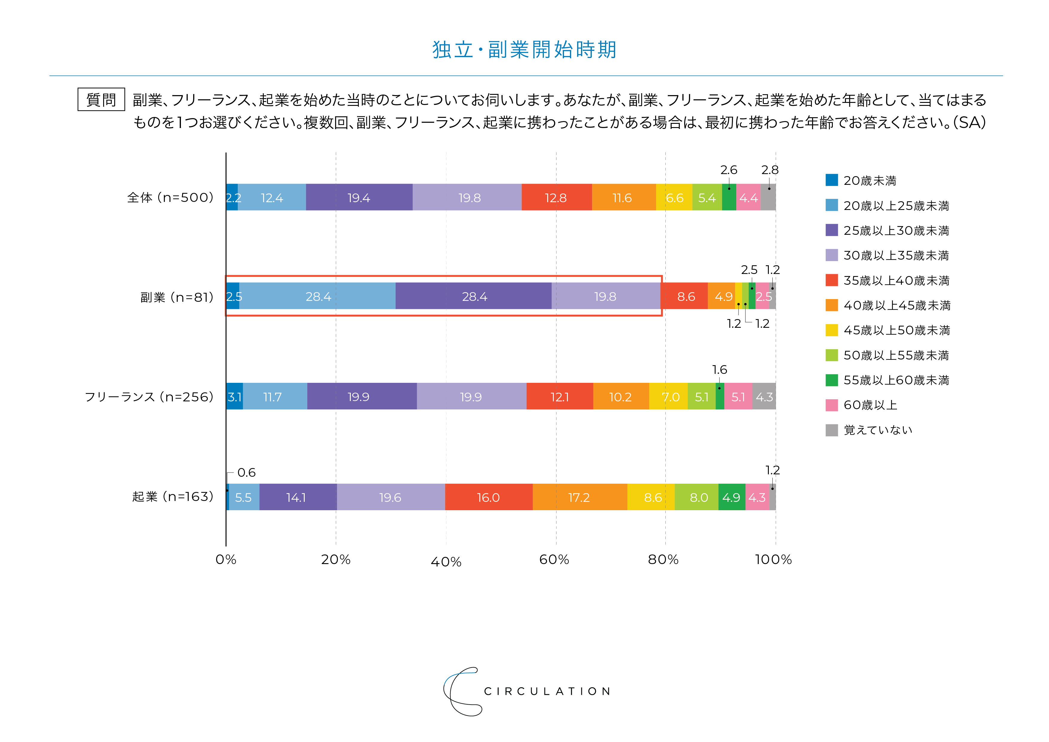 副業開始年齢が若年化し、20歳以上35歳未満が約76.6%を占める