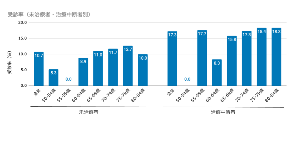 3.性別では女性、未受診者/治療中断者の別では治療中断者でより高い受診率でした。