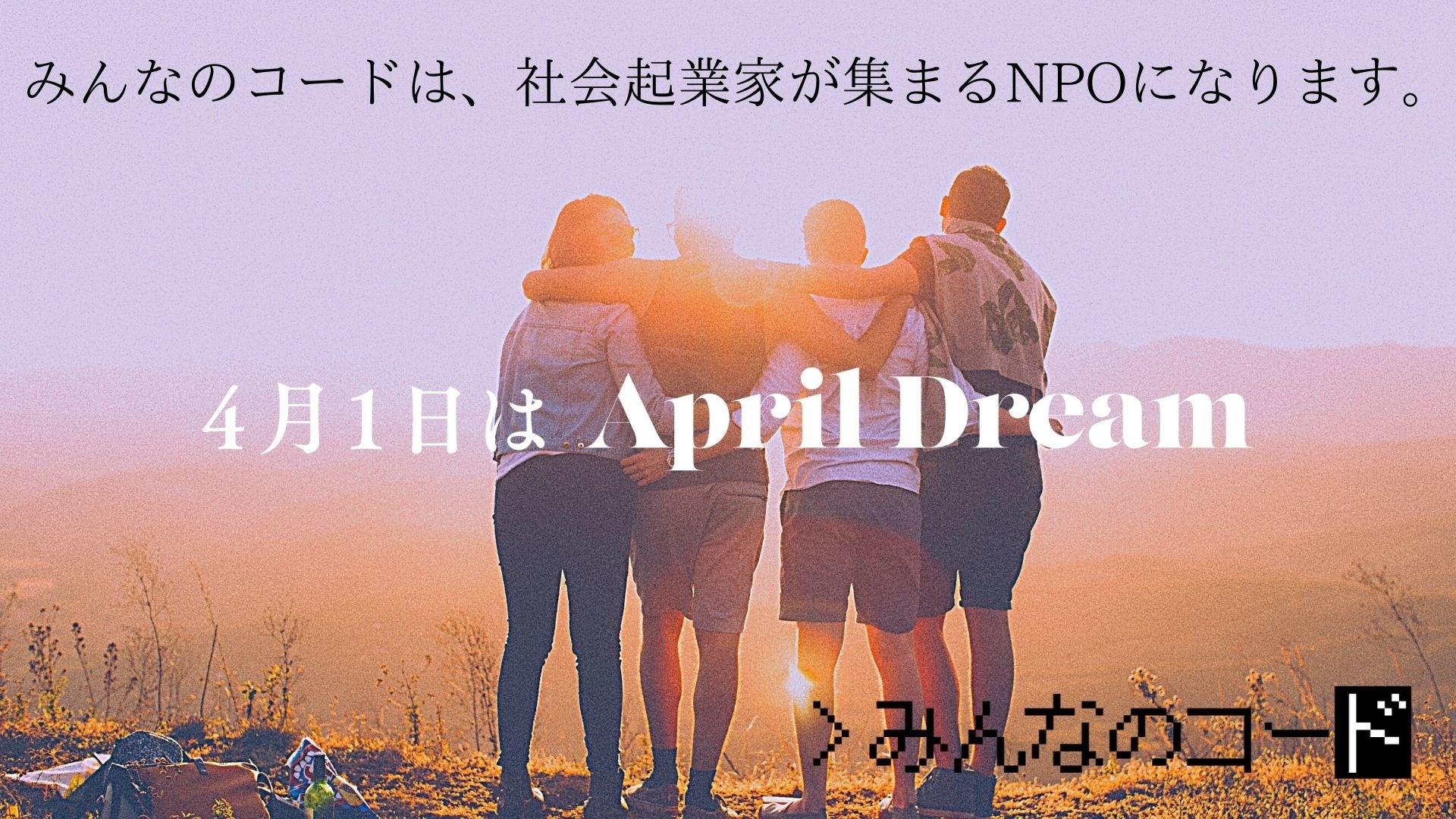 ※当法人は、4月1日を夢を発信する日にしようとするApril Dreamに賛同しています。このプレスリリースは「みんなのコード」の夢です。