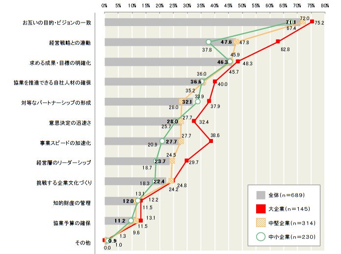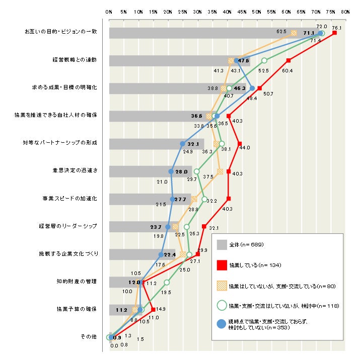 『日本企業の経営課題2022』 調査結果速報【第2弾】スタートアップとの協業のポイントは「お互いの目的・ビジョンの一致」が7割。新規事業の開発を目的として交流する場合が6割