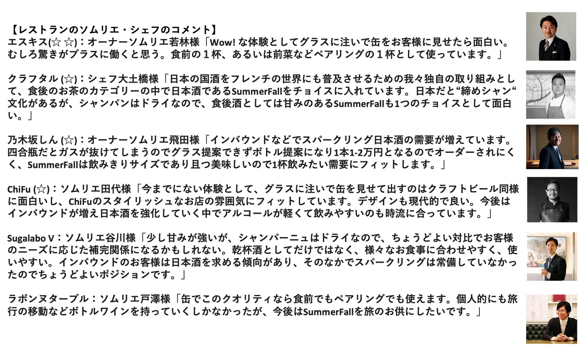 エスキス(東京・銀座)、乃木坂しん(東京・乃木坂)、クラフタル(東京・中目黒)などの星付きレストランが正式採用。一流のシェフ・ソムリエからの声を紹介します。