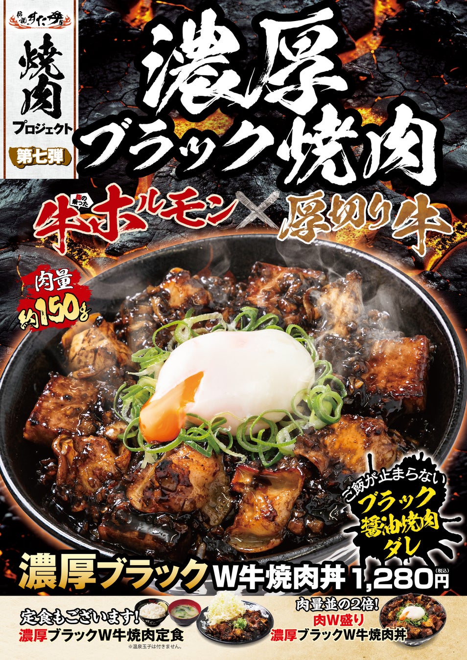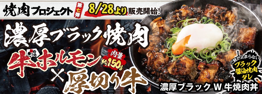 『食を通じて、日本全国さらには世界の人々の底力となる』という企業理念を掲げる当店は、いつまでも続く「厳暑」を乗り切っていただくために、ガッツリすたみなのつく商品を開発し皆様に元気になっていただきたいと考えました。そこで、累計35万食を超える人気シリーズ『焼肉プロジェクト』第7弾として、焼肉の人気部位である「牛ホルモン」を富山県のご当地ラーメンである「富山ブラック」から着想を得て、パンチの効いた“特製焼肉ダレ”で豪快に炒めた『濃厚ブラックW牛焼肉丼』を開発いたしました!