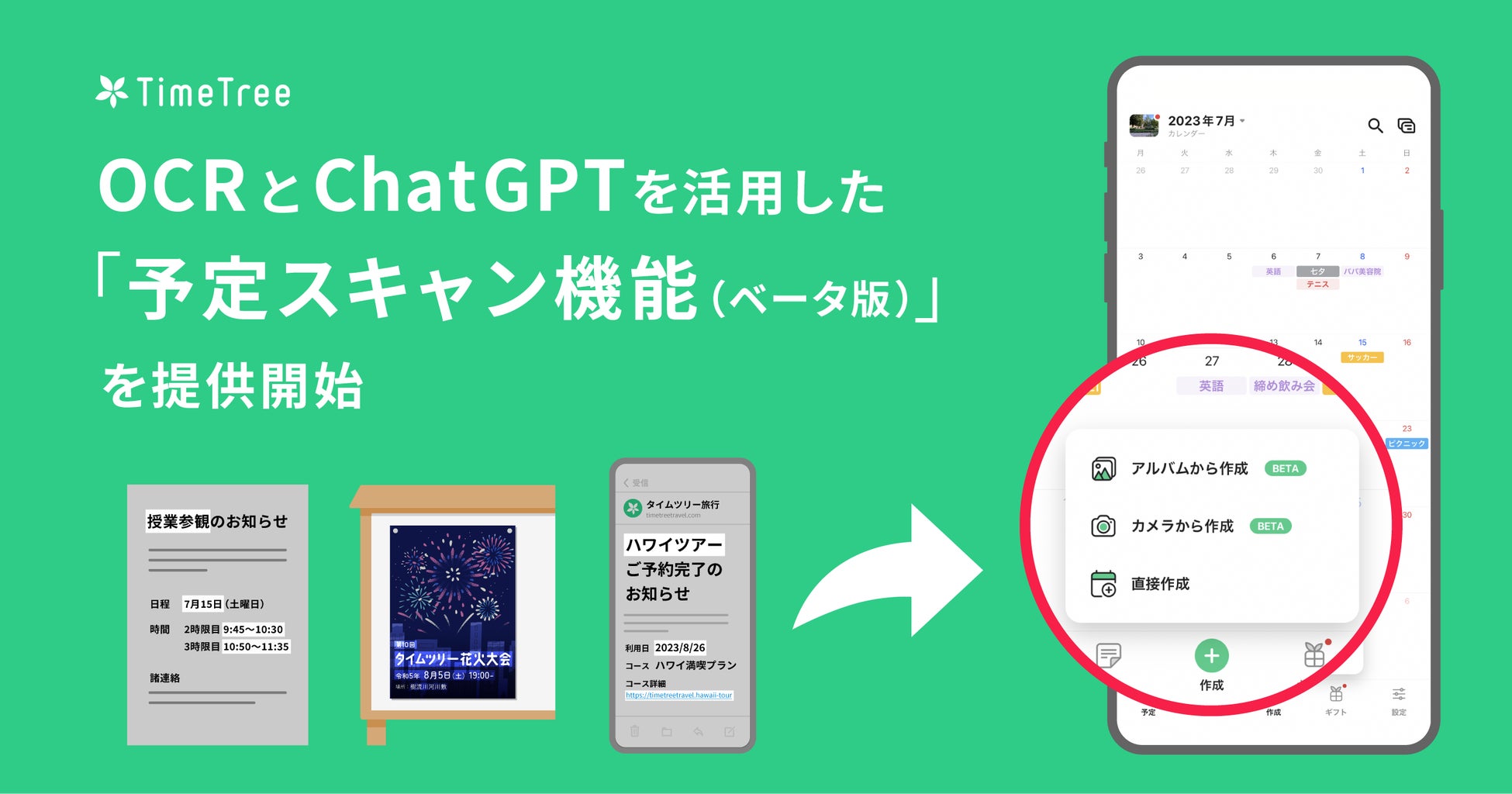 株式会社TimeTree、カレンダーシェアアプリ「TimeTree」にOCRとChatGPTを活用した「予定スキャン機能(ベータ版)」を提供開始