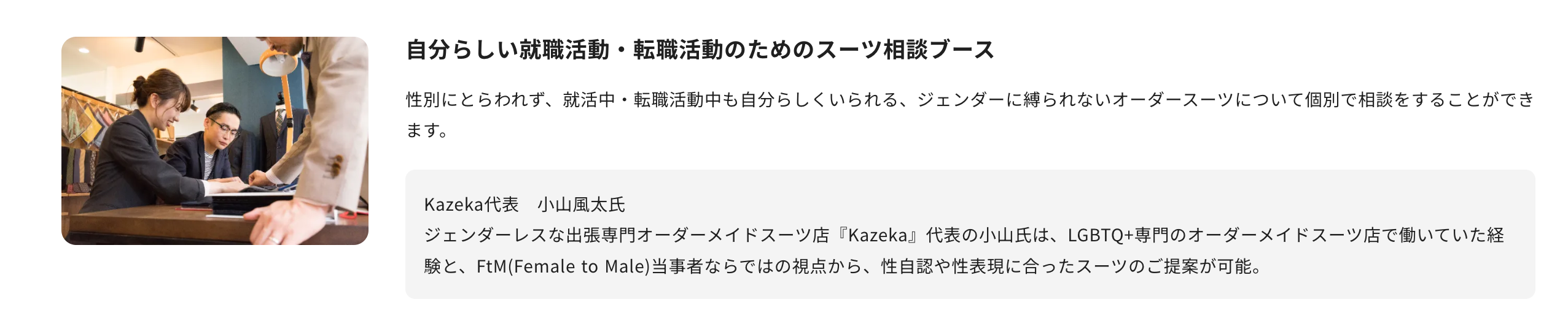 ・性別にとらわれないオーダーメイドスーツの相談ブース