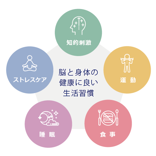 ■睡眠・食事・ストレスケア・運動・知的刺激の5領域から作る健康