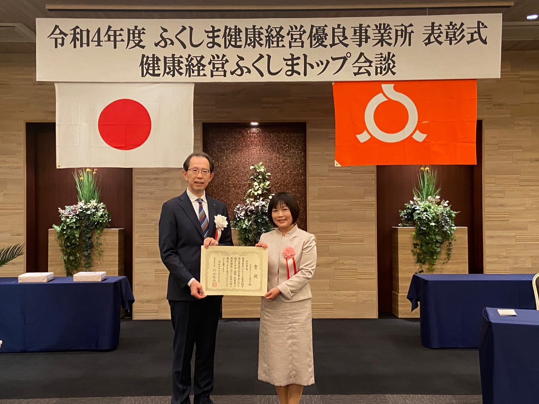 また、本年度のふくしま健康経営優良事業所の最高賞「知事賞」を受賞。12月23日に福島市で表彰式がおこなわれました。オフィスおかん導入企業で当賞を獲得した初の企業です。