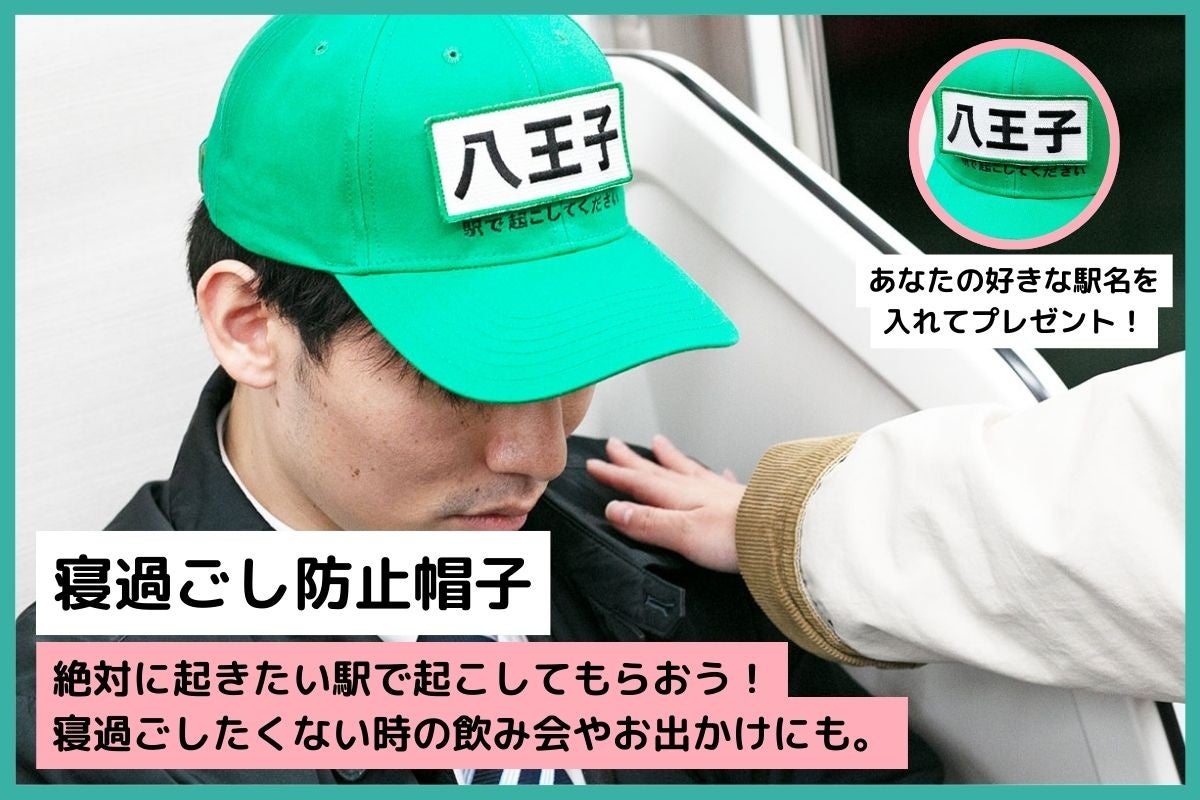 正気のサタン12缶、寝過ごし防止帽子、寝過ごしま千社札ステッカー