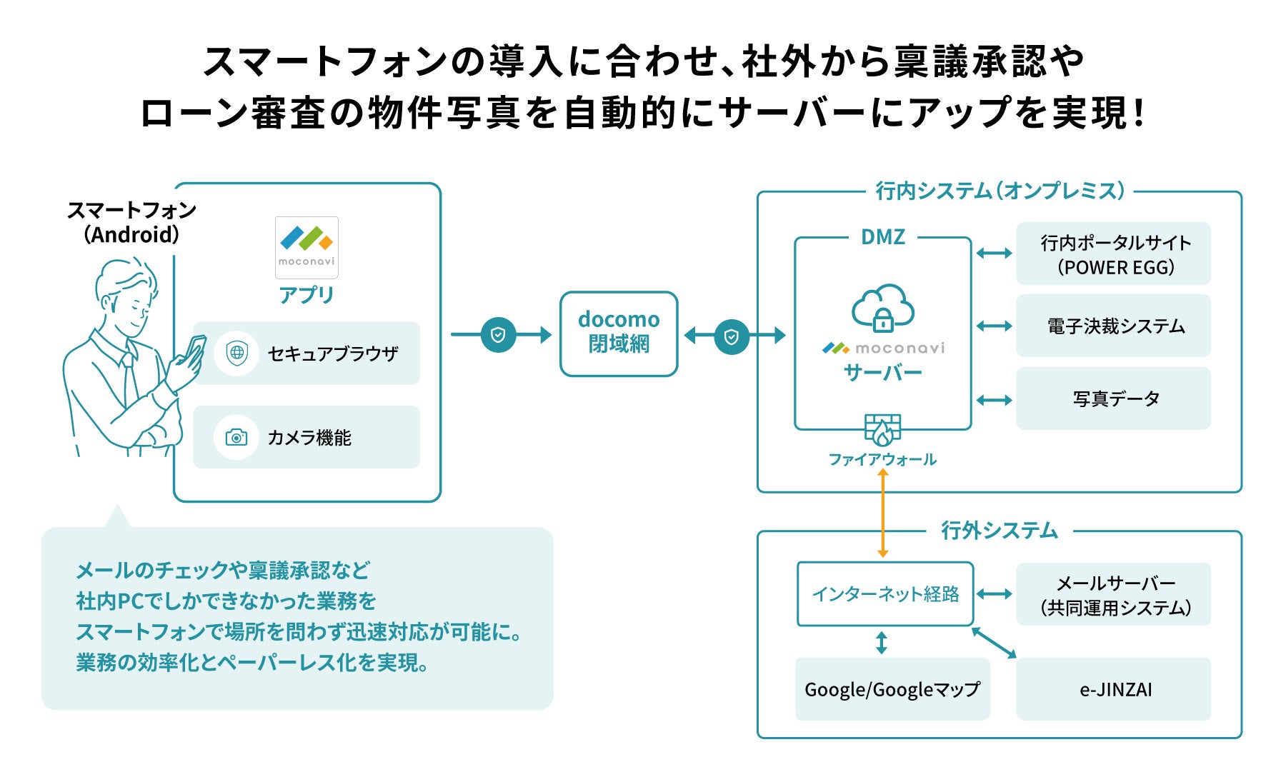 これにより、セキュアブラウザによる行内ポータルサイトや電子決裁システムへのアクセスを可能にし、スマホ業務による効率化と意思決定の迅速化を実現。また、住宅ローン審査のための物件写真を「moconavi」から直接サーバーに保存、デジタルデータとして資料に添付が可能となり、効率化とペーパーレス化を推進しました。業務課題を解決するとともに効率化を実現した事例を公開します。