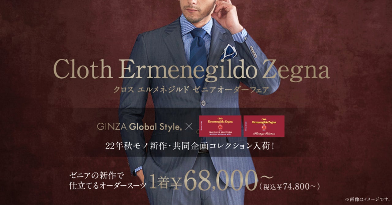 (https://www.global-style.jp/fair/202212/zegna/)- ゼニア生地のスーツお仕上がり例