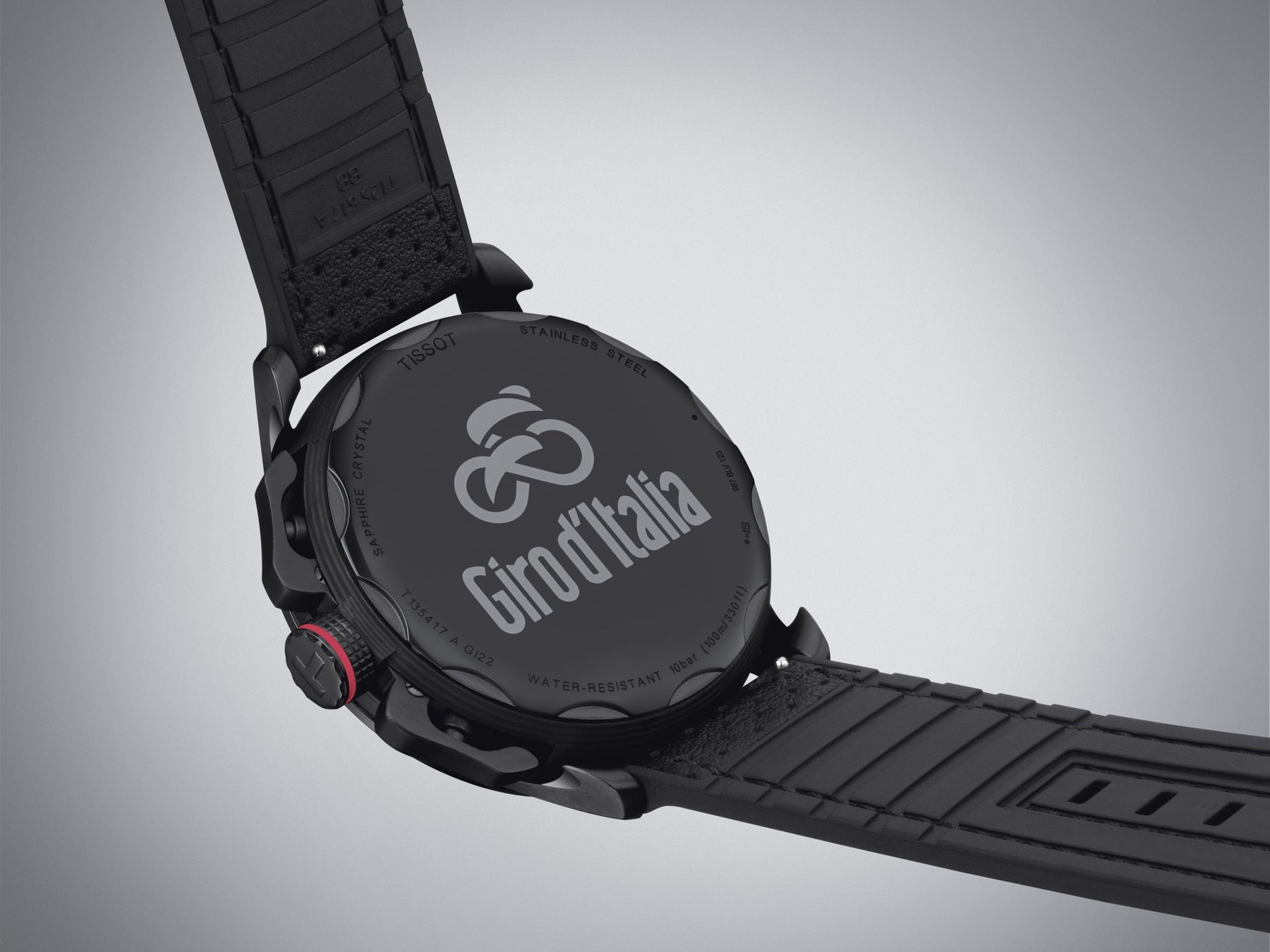 ケースバックにはレースロゴが刻印され、各大会のカラー(ジロはピンク、ツール・ド・フランスは黄色、ブエルタは赤)が秒針とリューズに施されています。