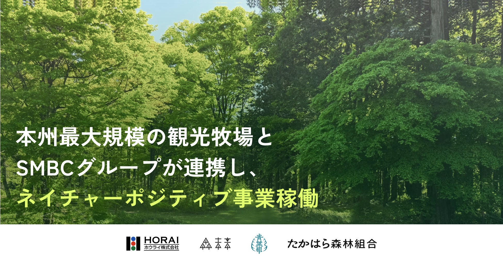 なお、ホウライは、本取組みにあたり、広告主:株式会社三井住友フィナンシャルグループ(執行役社長グループCEO:中島達、以下「SMBCグループ」)と、3か年の広告契約を締結(※)しました。2024年4月17日締結の循環型の酪農・林業における協業を目的とした覚書を発展させ、年間115万人(Agoop株式会社人流データ、2024年10月~2025年9月直近1年間)が訪れる那須千本松牧場において情報発信を行いながら本事業を推進します。