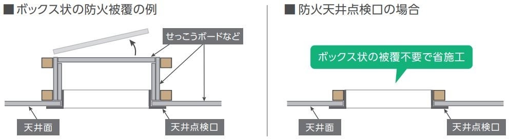 ボックス状の防火被覆の場合、点検後にせっこうボードのフタが元の位置に戻されるか不安がありますが、本製品はボックス状の防火被覆が不要なため、点検後も確実に防火被覆の連続性を確保でき管理上安心です。