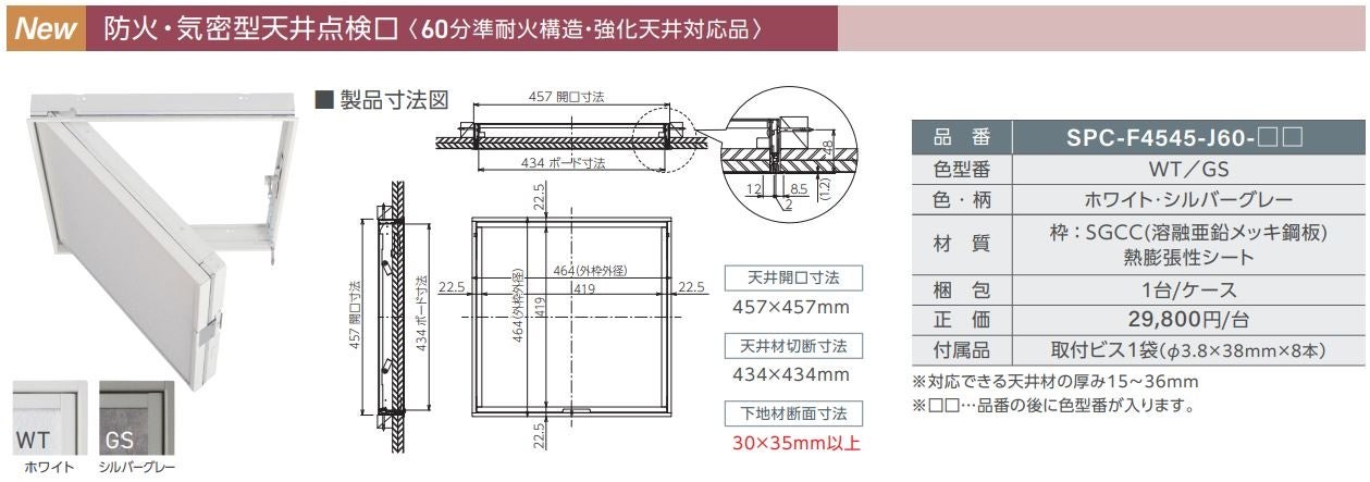 【城東テクノ】防火天井点検口に「60分準耐火構造・強化天井対応品」が新登場!