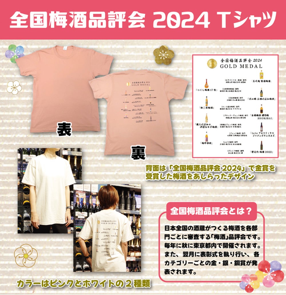 背面に「全国梅酒品評会2024」金賞受賞梅酒がプリントされた記念Tシャツです。