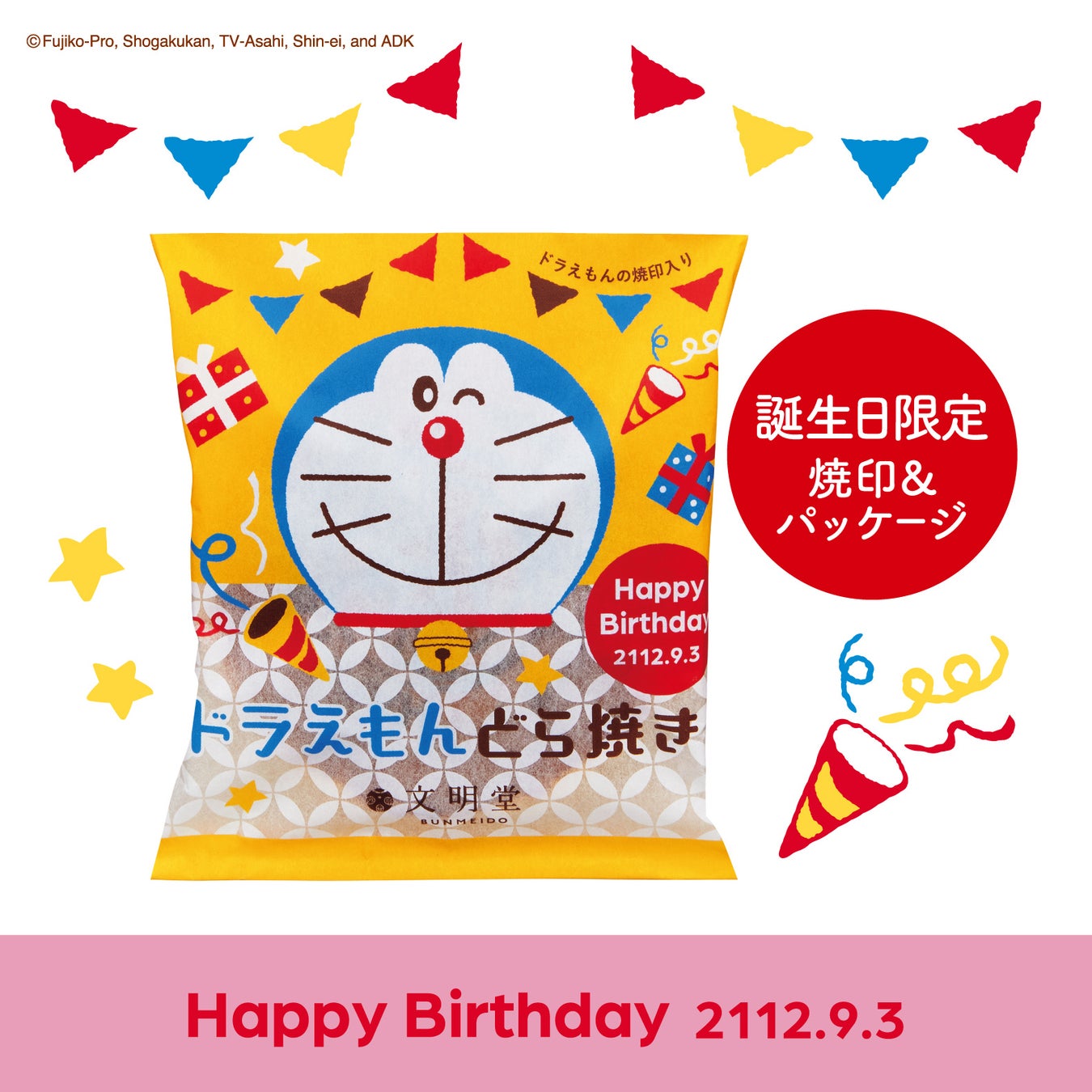 日頃から多くのお客様にご愛顧いただいている「ドラえもんどら焼き」が、9月3日のドラえもんの誕生日をお祝いして、期間限定「ドラえもんどら焼き(誕生日限定デザイン)」として新登場します。