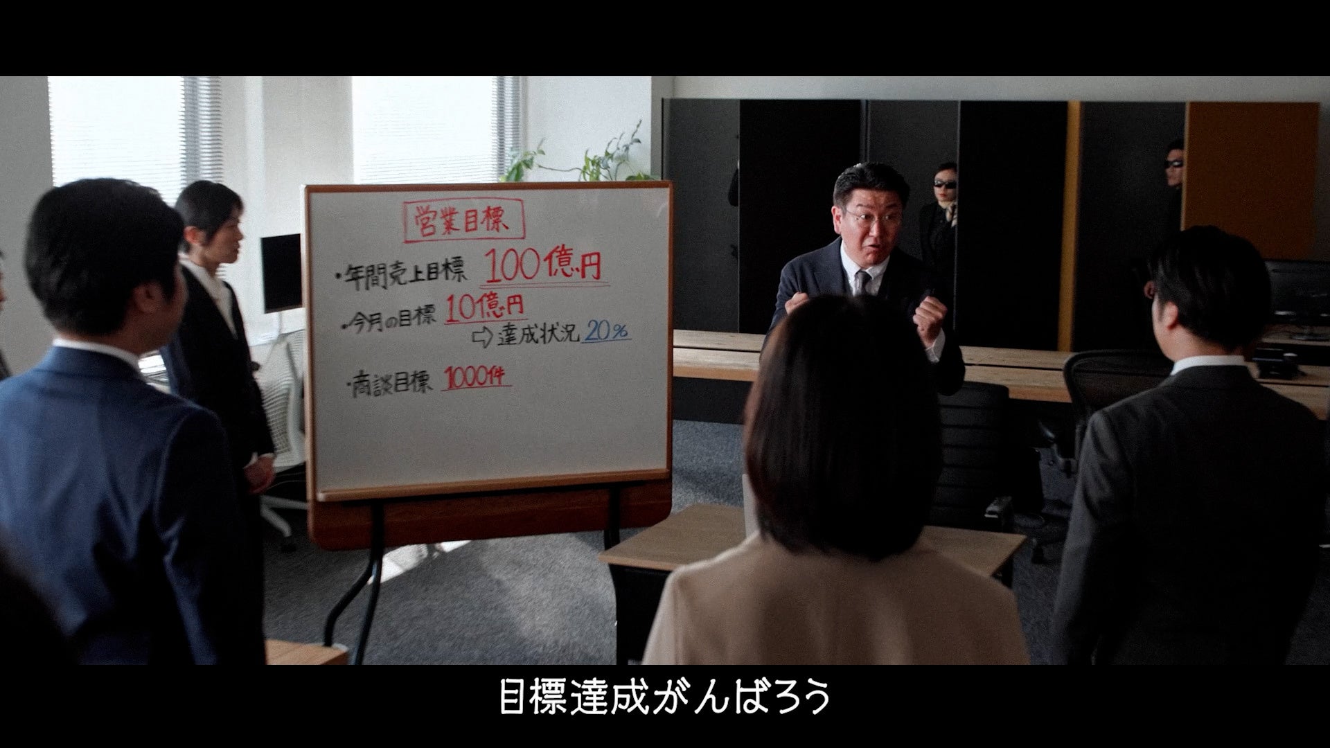 本CMでは、営業活動で陥りがちな「よくある停滞シーン」を、第三者であるスパイが密かに観察する様子をコミカルに描いています。現場の状況が見えず不安を募らせた部長の「ホントに営業できてる?」というつぶやきに対し、スパイが「eセールスマネージャーが必要です」と断言。営業のブラックボックス化という根深い課題に対し、デジタル活用による可視化と確実な成果への道筋を印象的に表現しています。