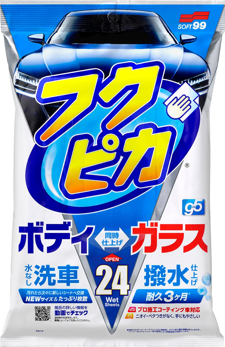 サッと拭くだけでボディとガラスにクリーニング、撥水、ワックス効果が同時に完了する人気の『フクピカGen5 24枚』を1回使い切りの4枚セットにしました。車まるごと洗車はもちろん、パーツのお手入れなどのちょっと使いにも便利です。