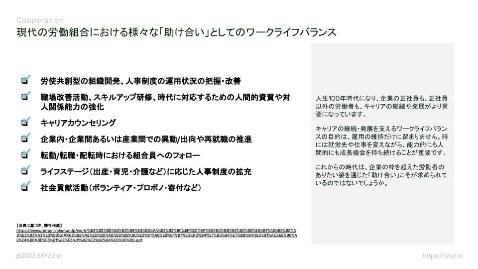 労働組合の原点である「助け合い」の思想をさらなる次世代へと届けるべく、労働組合運営に取り組むためのホワイトペーパーとなっています。