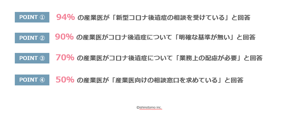 - 94%の産業医が「コロナ後遺症の相談を受けている」と回答