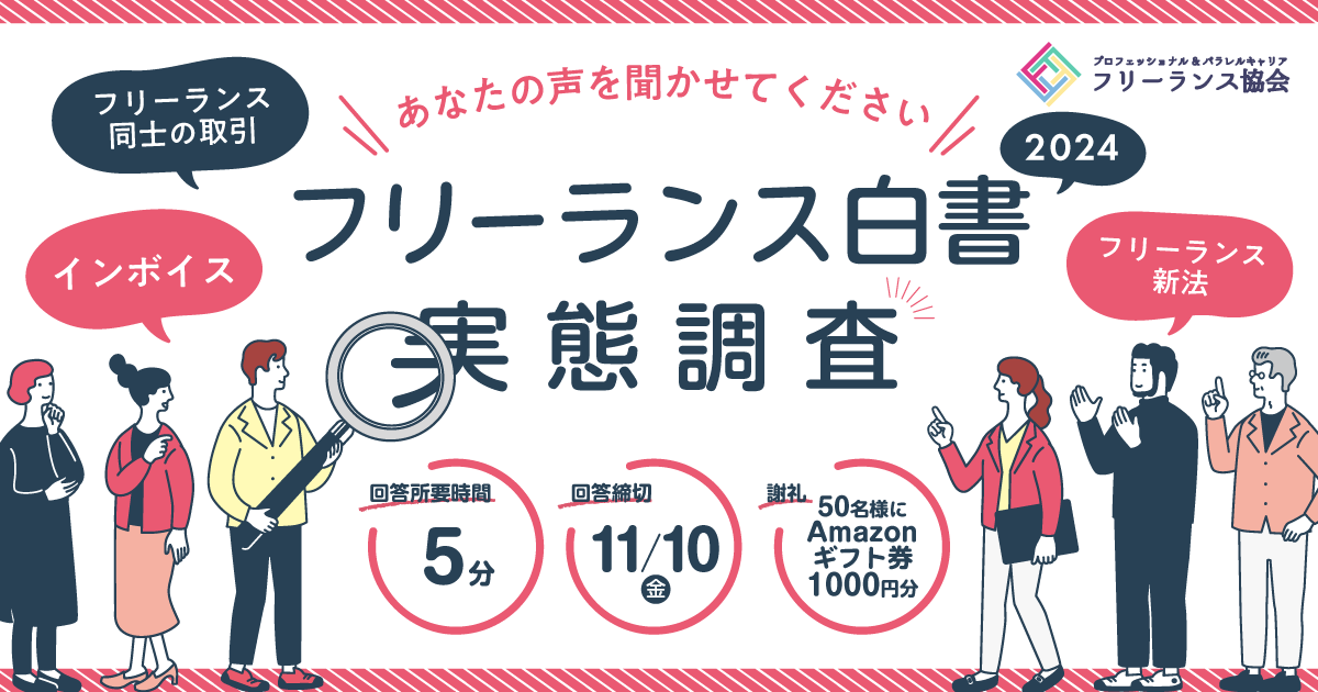 回答募集!フリーランス白書2024 実態調査~インボイス、フリーランス新法など