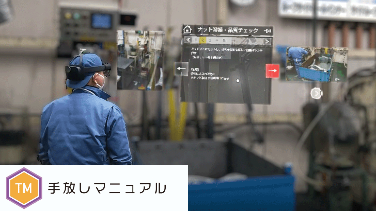 - テキスト・静止画・動画からなる作業マニュアルをステップごとに空間にMR表示し閲覧できる