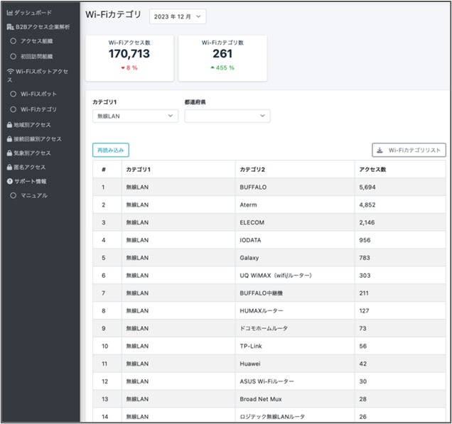 株式会社Geolocation Technology(本社:静岡県三島市/代表取締役:山本敬介/証券コード:4018/以下:Geolocation Technology)は、「どこどこJP v2.7」の新機能として「どこどこJPレポート」に新機能「Wi-Fiスポットアクセスレポート」を開発し、2023年12月20日にリリースしました。どこどこJPをご利用のお客様は、これまでのB2Bアクセス企業解析レポートに加えて、Wi-Fiスポットアクセスレポートも追加費用なく閲覧できます。